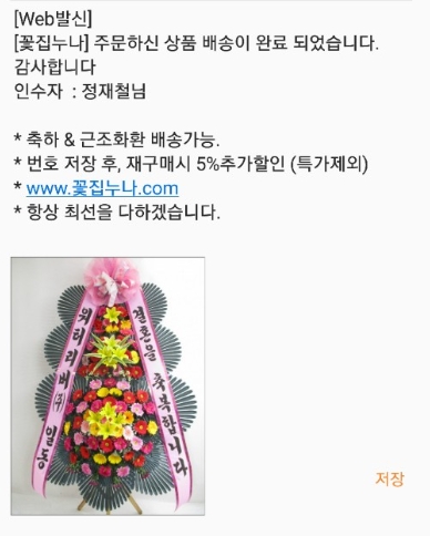 판교 결혼식 화환 배달 완료 후 주문자님의 휴대폰 번호로